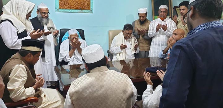 হেফাজত আমীরের সাথে সাক্ষাতশেষে মুনাজাত করছেন স্বরাষ্ট্রমন্ত্রী আসাদুজ্জামান খান কামাল[/caption]