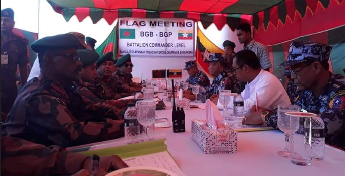 দু’দেশের সীমান্ত রক্ষী ব্যাটালিয়ন পর্যায়ে মধ্যকার সেনা সদস্য ফেরত বিষয়ে আয়োজিত পতাকা বৈঠকে বিজিবির ৯ সদস্যের পক্ষে নেতৃত্ব দেন নাইক্ষ্যংছড়ি ১১বিজিবির অধিনায়ক লে. কর্ণেল আসাদুজ্জামান, ৩৪ বিজিবির অধিনায়ক লে.কর্ণেল আলী হায়দার আজাদ আহমেদ, কক্সবাজার রিজিয়ন দপ্তরের লে. কর্নেল মোস্তাফিজ। অপরদিকে মিয়ানমারের পক্ষে ১২ সদস্যের নেতৃত্ব দেন- সে দেশের বিজিপির লে. কর্ণেল জ উই লিয়াং।