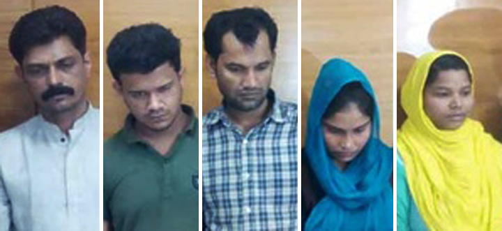 গ্রেপ্তার পাঁচজন হলেন- মো. দিদারুল ইসলাম ওরফে দিদার (৩৫), ফাতেমা ইয়াসমিন নিশি (২৮), বিথিত মাহমুদ মোস্তফা সিফা (২৩), মো. আনোয়ার হোসেন ওরফে আনু (৪৪) ও রাকিব আল ইমরান (২৬)।