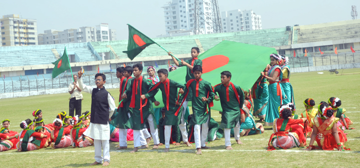 উদ্বোধনী অনুষ্ঠানের ডিসপ্লে প্রদর্শন করছেন শিশু একাডেমির শিক্ষার্থীরা।[/caption]
