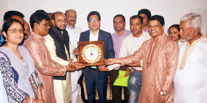জনপ্রশাসন প্রতিমন্ত্রী ফরহাদ হোসেন এম.পির হাতে ক্রেস্ট তুলে দিচ্ছেন বাংলাদেশ কালেক্টরেট সহকারী সমিতির নেতৃবৃন্দ।[/caption]
