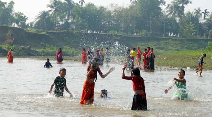 শুক্রবার (১২ এপ্রিল) ভোরের আলোয় ঐহিত্যবাহী পোশাকে ভক্তি-শ্রদ্ধাভরে, কলাপাতায় করে নানা রঙের ফুল নিয়ে পুরনো বছরের গ্লানি ভুলে নতুন বছরের মঙ্গল কামনায় নদীর পাড়ে আসতে শুরু করে পাহাড়ি তরুণ-তরুণীরা। ছোটরাও আসে বড়দের হাত ধরে।