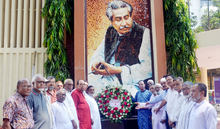 চট্টগ্রাম : ঐতিহাসিক মুজিবনগর দিবস উপলক্ষে ১৭ এপ্রিল বুধবার সকাল ১০টায় চট্টগ্রাম জেলা শিল্পকলা একাডেমিতে জাতির পিতা বঙ্গবন্ধু শেখ মুজিবুর রহমানের প্রতিকৃতিতে ফুলেল শ্রদ্ধাঞ্জলি নিবেদন করেছেন বাংলাদেশ মুক্তিযোদ্ধা সংসদ চট্টগ্রাম মহানগর ইউনিট কমান্ড নেতৃবৃন্দ।