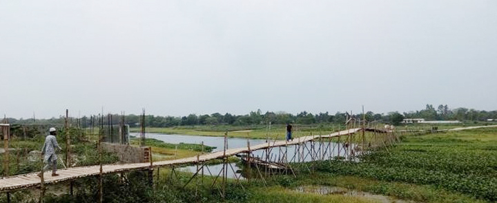 বাঁশের দীর্ঘ সাঁকোই লক্ষাধিক মানুষের একমাত্র ভরসা[/caption]