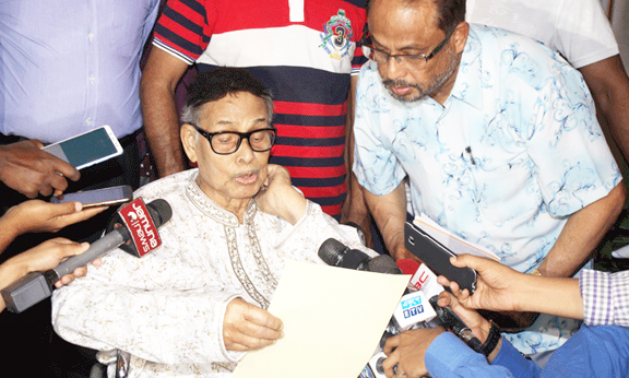 বারিধারায় নিজের বাসায় লিখিত বক্তব্য পাঠ করেন এরশাদ। ছবি সংগৃহীত[/caption]