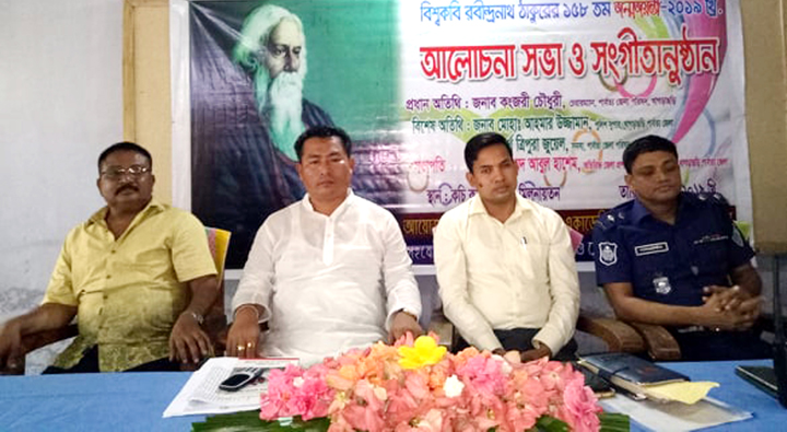 আলোচনা সভায় বক্তারা বিশ^কবি রবীন্দ্রনাথ ঠাকুরের অসামান্য অবদানের ইতিহাস তুলে ধরে বলেন, ‘রবীন্দ্রনাথ ঠাকুর ছিলেন বাংলা সাহিত্যের উজ্জ্বল নক্ষত্র। রবীন্দ্রনাথ বাংলা গল্প, কবিতা, প্রবন্ধ, উপন্যাসে নতুন মাত্রা যোগ করেছে। রবীন্দ্রনাথে সৃষ্টি নাগরিক জীবনের সকল আবেগ-অনুভুতিকে স্পর্শ করেছে। তিনি বাংলা ভাষাভাষিদের মধ্যে প্রথম নোবেল বিজয়ী বলে উলেখ করে। সভাশেষে স্থানীয় শিল্পিদের অংশ গ্রহণে সংগীতানুষ্ঠানের আয়োজন করা হয়।