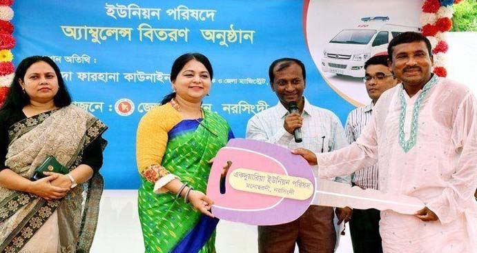 নরসিংদীর ৮ ইউনিয়ন পরিষদকে অ্যাম্বুল্যান্স হস্তান্তর