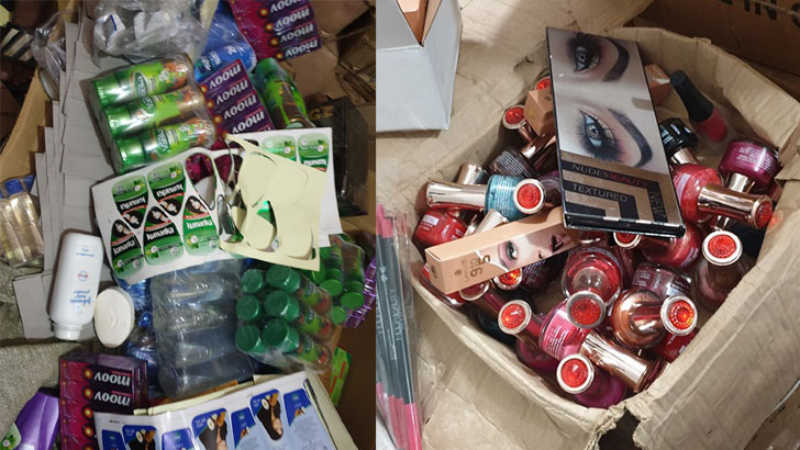 উদ্ধার হওয়া নকল কসমেটিক্স। ছবি: সংগৃহীত[/caption]