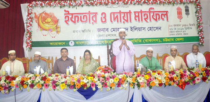 বাকাসস, চট্টগ্রাম জেলা কমিটির সভাপতি মো: নাছির উদ্দিন চৌধুরীর সভাপতিত্বে ও সাধারণ সম্পাদক এসএম আরিফ হোসেনের সঞ্চালনায় অনুষ্ঠিত ইফতার ও দোয়া মাহফিলে প্রধান অতিথি ছিলেন চট্টগ্রাম জেলা প্রশাসক (ডিসি) মোহাম্মদ ইলিয়াস হোসেন।