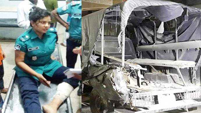 হামলায় আহত পুলিশ কর্মকর্তা রাশেদা। ছবি: সংগৃহীত[/caption]