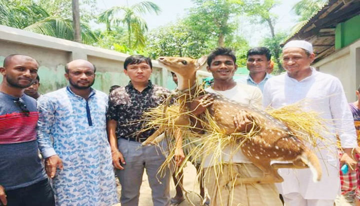 পাহাড়ি ঢলে ভেসে আসা চিত্রা হরিণ ধরে বঙ্গবন্ধু সাফারি পার্কে হস্তান্তর
