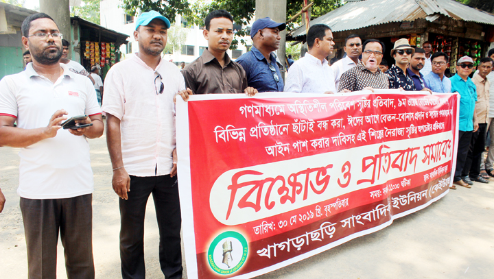খাগড়াছড়ি : খাগড়াছড়ি সাংবাদিক ইউনিয়ন (কেইউজে) এর আয়োজনে ৫৭ ধারা বাতিল, ৯ম ওয়েজ বোর্ড গেজেট প্রকাশ, ঈদের আগে বেতন-বোনাসসহ সাংবাদিকের নিরাপত্তায় আইন করার দাবীতে বিক্ষোভ মিছিল, প্রতিবাদ সমাবেশ ও মানববন্ধন করেছে পেশাজীবি সাংবাদিকরা।