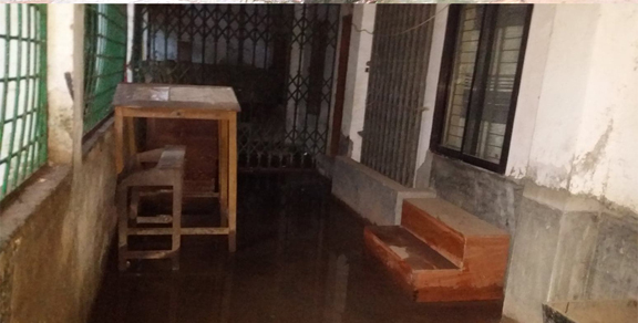 পাহাড় থেকে নেমে আসা পানি রিটেইনিং দেয়াল বেয়ে চট্টগ্রাম সরকারী উচ্চ বিদ্যালয়ের নীচতলার শ্রেণী কক্ষে ঢুকে পড়ে।[/caption]