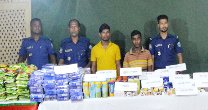 তাদের কাছ থেকে ভারতীয় জুতা, হারমোনিয়াম, নেভিয়া সাবান, ফ্লোর স্যাভলন, সেনোরা, গার্নিয়ার ক্লোর, অটোবিন, বর্লিন, পেইন আউট, কোল গেইট-ডান্টি কান্তি, বেড ক্রিম, গার্নিয়া ক্রিম, নেভিয়া সপ্ট, সানসিল্ক স্যাম্পু, লাকমি, পারফিউম ফগ, লোরেল, ডেক্সোরেন, কমপ্রোট, অরাল বি ব্রাশ, হরলিক্স, ল্যাডিস ব্যাগ, সপিং ব্যাগ, ল্যাক্টোজেন গুড়া দুধ, ডেরি গুড়া দুধ, চা পাতাসহ ২৬ পদের সামগ্রী উদ্ধার করা হয়।