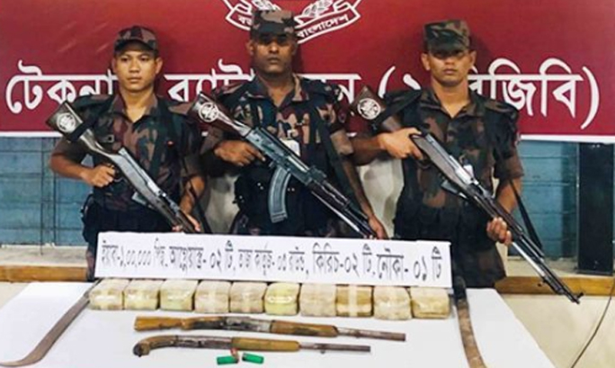 উদ্ধার করা অস্ত্র, গুলি ও ইয়াবা[/caption]