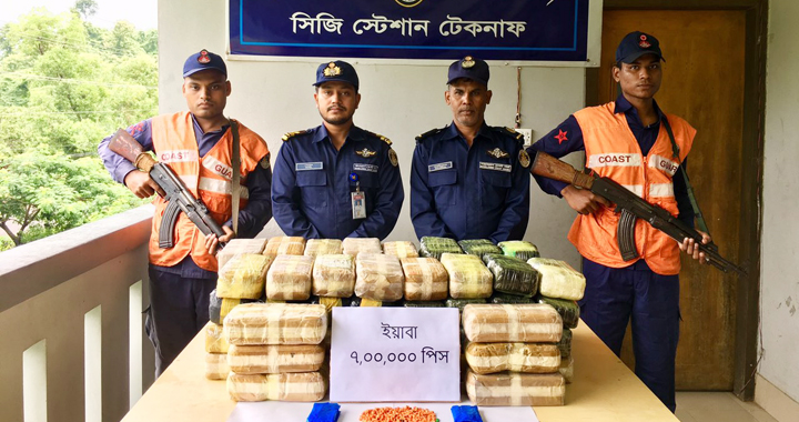কোস্ট গার্ডের অভিযান : নাফ নদীতে ৭লাখ ইয়াবাসহ ট্রলার জব্দ