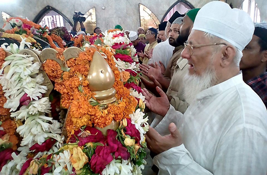 লাখো ভক্তের অংশগ্রহণে দেশ-জাতি ও মুসলিম বিশ্বের কল্যাণে মুনাজাত পরিচালনা করছেন বাবাজান কেবলা ও কাবার আওলাদ ও সাজ্জাদানশীন মোতওয়াল্লী শাহসুফি আলহাজ্ব শাহজাদা সৈয়দ মুহাম্মদ এনায়েত উল্লাহ খান (ম.জি.আ)। এনায়েত উল্লাহ খান বলেন, কেয়ামত পর্যন্ত দিশেহারা মানুষের সংস্কার সাধনে যুগে যুগে আবির্ভূত হবেন আউলিয়া ও বুজুর্গানে দ্বীন। আত্ম-অহমিকা, হিংসা, ক্রোধ, বিদ্বেষ, হানাহানি, অনৈতিক-অনৈসলামিক কার্যকলাপের দরুন বর্তমানে বিশ্বে অস্থিরতা, যুদ্ধ, অশান্তি ছড়িয়ে পড়েছে।