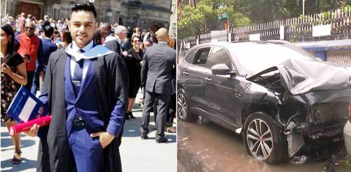 এসময় বিপরীত দিক থেকে আসা একটি বিলাসবহুল জাগুয়ার গাড়ি পাশের একটি মার্সিডিজ গাড়িকে সজোরে ধাক্কা দিয়ে দুই বাংলাদেশিকে চাপা দেয়। তাদের সঙ্গে দাঁড়িয়ে থাকা আরো এক পথচারী এতে মারাত্মক আহত হন।