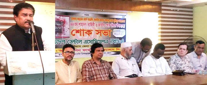 চট্টগ্রাম : বাংলাদেশ ডেন্টাল এসোসিয়েশন চট্টগ্রাম জেলা কমিটির উদ্যোগে বঙ্গবন্ধুর ৪৪ তম শাহাদাত বার্ষিকী উপলক্ষে ইঞ্জিনিয়ার আব্দুল খালেক মিলনায়তনে দিনব্যাপী বিভিন্ন কর্মসূচী পালিত হয়। সকাল ৯টায় বঙ্গবন্ধুর প্রতিকৃতিতে পুষ্পমাল্য অর্পণ ১১টায় আলোচনা সভা ও দোয়া মাহফিলের মধ্যদিয়ে কর্মসূচী সমাপ্তি ঘোষণা করা হয়।