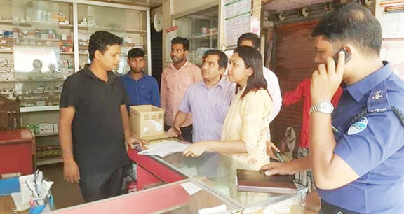 লামায় ওষুধের দোকানে ভ্রাম্যমাণ আদালতের অভিযান[/caption]
