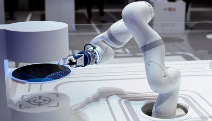 চীনের একটি কারখানা। শুধুই রোবট, খুব বেশি কর্মীর দরকার হয় না এমন কারখানায়— চায়না নিউজ সার্ভিস