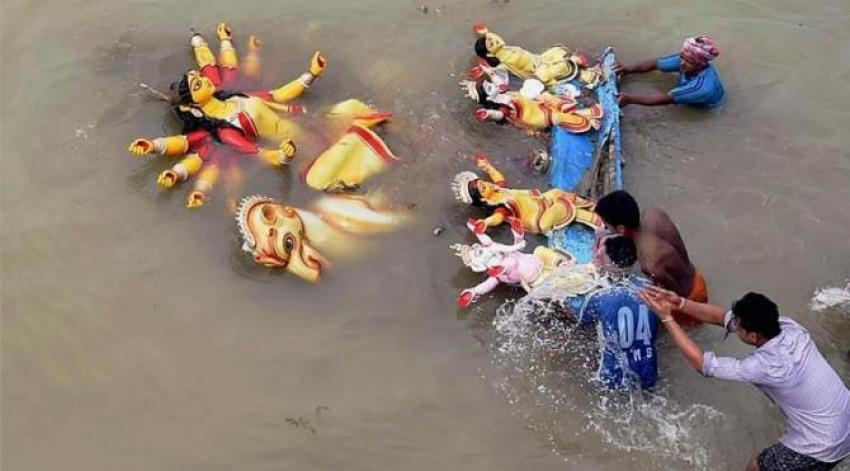 ভারতে পরিবেশ সুরক্ষায় গঙ্গা নদীতে প্রতিমা বিসর্জনের ওপর নিষেধাজ্ঞা আরোপ করা হয়েছে।