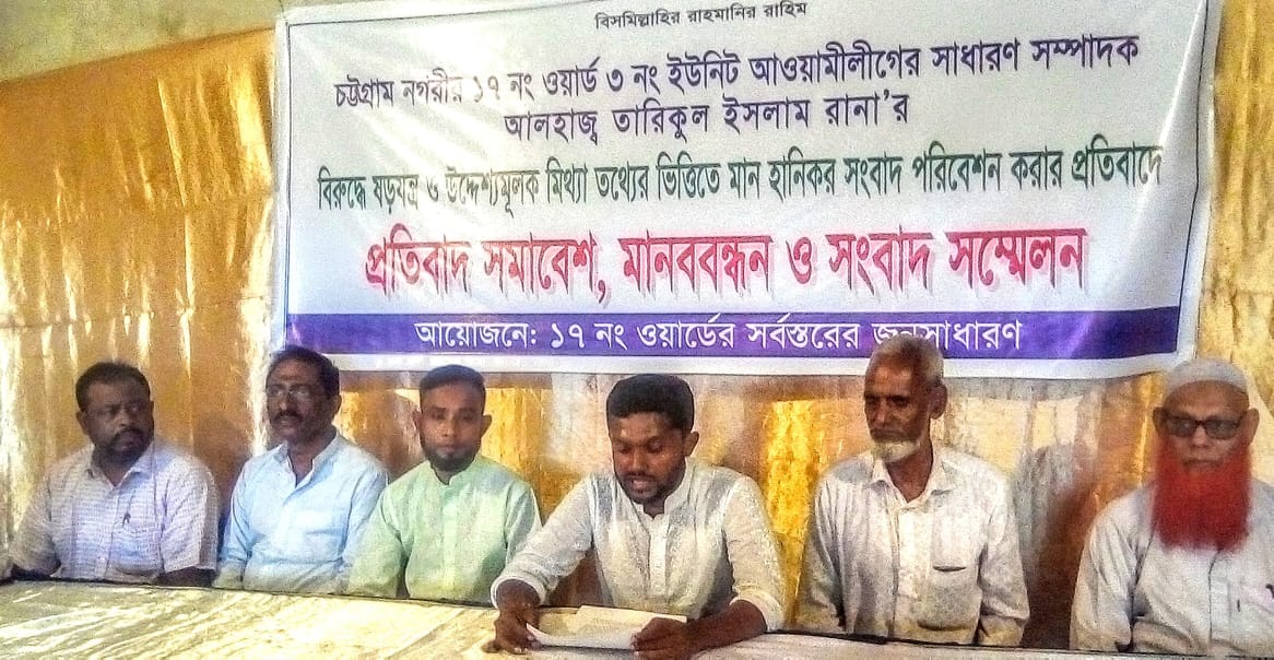 মিথ্যা ও ভুল তথ্যের ভিত্তিতে গত ৪ অক্টোবর ও ৬ অক্টোবর দুটি দৈনিকে সংবাদ প্রকাশের প্রতিবাদে গত সোমবার (৭ অক্টোবর) বিকেল ৪ টায় বাকলিয়ার ১৭ নং ওয়ার্ডের এলাকাবাসীর উদ্দোগে প্রতিবাদ সমাবেশ, সংবাদ সম্মেলন ও মানববন্ধনের আয়োজন করা হয়েছে। ।