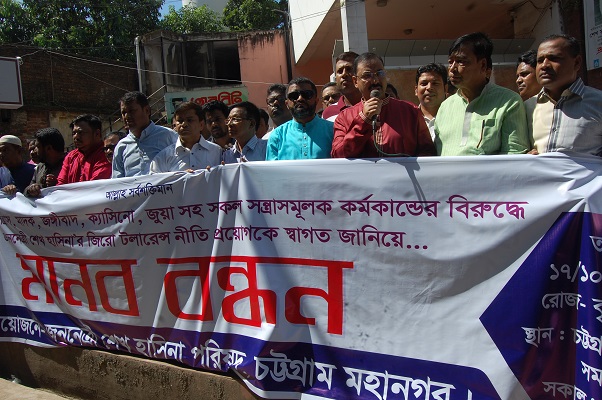 প্রধানমন্ত্রীর শুদ্ধ অভিযানকে সমর্থন জানিয়ে চট্টগ্রামে মানববন্ধন