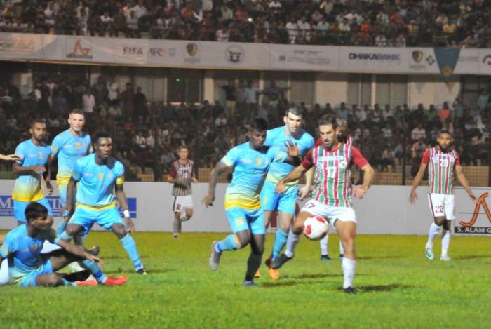 প্রথমার্ধে বলার মতো দুটো সুযোগই ছিল ভারতের ঐতিহ্যবাহী দলটির। ৩৩ মিনিটে শিলটন সিনডের শট চলে যায় ক্রস বারের ওপর দিয়ে। আর বিরতির মিনিট দুয়েক আগে গোললাইন থেকে একটি ক্রস ফিরিয়ে চট্টগ্রাম আবাহনীকে রক্ষা করেন সার্বিয়ান ডিফেন্ডার প্লেন পিটার।