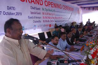 ফিতা কেটে মাসব্যাপী মেলার উদ্বোধন করেন মন্ত্রী।