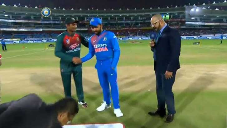 ভারতের বিপক্ষে তৃতীয় টি-টোয়েন্টি ম্যাচে টস জিতে প্রথমে বোলিং করার সিদ্ধান্ত নিয়েছেন বাংলাদেশ দলের অধিনায়ক মাহমুদউল্লাহ রিয়াদ। ভারতের নাগপুরে খেলাটি অনুষ্ঠিত হচ্ছে। সিরিজের প্রথম দুই ম্যাচ হয়েছে দিল্লি আর রাজকোটে। আজ তৃতীয় ও সিরিজের শেষ টি-টোয়েন্টি ম্যাচটি হচ্ছে নাগপুরে।