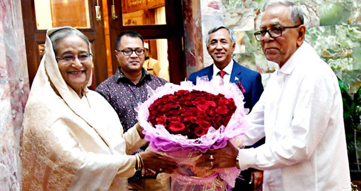 রাষ্ট্রপতি মো. আবদুল হামিদের সঙ্গে বঙ্গভবনে সৌজন্য সাক্ষাৎ করেছেন প্রধানমন্ত্রী শেখ হাসিনা। বৃহস্পতিবার সন্ধ্যার পর প্রধানমন্ত্রী বঙ্গভবনে পৌঁছালে তাকে ফুল দিয়ে অভ্যর্থনা জানান রাষ্ট্রপতি।