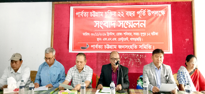 পার্বত্য চট্টগ্রামে স্থায়ী শান্তি প্রতিষ্ঠার লক্ষ্যে চুক্তির যথাযথ ও পূর্নাঙ্গ বাস্তবায়নের দাবীতে শনিবার (৩০ নভেম্বর) দুপুরে শহরের মহাজন পাড়াস্থ একটি রেস্টুরেন্টে এ সংবাদ সম্মেলন অনুষ্ঠিত হয়।