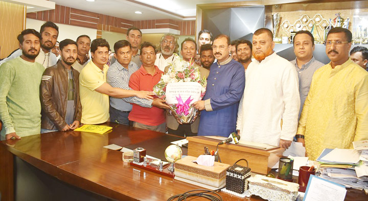 সিটি মেয়র আ জ ম নাছির উদ্দীনকে ফুলেল শুভেচ্ছা জানাচ্ছেন চসিক ক্রীড়া স্ট্যান্ডিং কমিটি ও চট্টগ্রাম সিটি কর্পোরেশনে একাদশের নেতৃবৃন্দ[/caption]