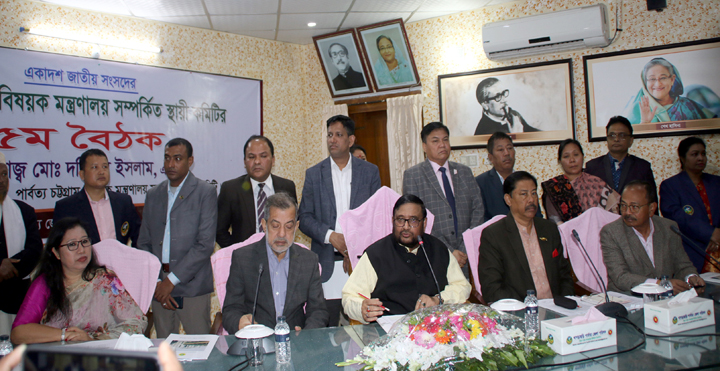 পার্বত্য চট্টগ্রাম বিষয়ক মন্ত্রণালয়ের স্থায়ী কমিটির সভাপতি আলহাজ্ব মো: দবিরুল ইসলামের সভাপতিত্বে অনুষ্ঠিত সভায়, পার্বত্য চট্টগ্রাম বিষয়ক মন্ত্রণালয়ের স্থায়ী কমিটির সদস্য ও পার্বত্য চট্টগ্রাম বিষয়ক মন্ত্রণালয়ের মন্ত্রী বীর বাহাদুর ঊশৈসিং এমপি, কমিটির সদস্য ও খাগড়াছড়ির সংসদ সদস্য কুজেন্দ্র লাল ত্রিপুরা, কমিটির সদস্য ও চট্টগ্রাম ৬ আসনের সংসদ সদস্য এ.বি.এম ফজলে করিম চৌধুরী, কমিটির সদস্য ও সংরক্ষিত নারী সংসদ সদস্য বাসন্তী