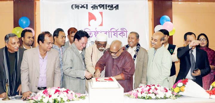 চট্টগ্রামের তিন সম্পাদক কেক কেটে দেশরূপান্তর পত্রিকার প্রথম বর্ষপূর্তি উদযাপন।[/caption]