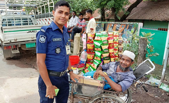 অসহায় মানুষের পাশে মানবতার ফেরিওয়ালা পুলিশ সদস্য মেহেদি হাসান দোলন।[/caption]