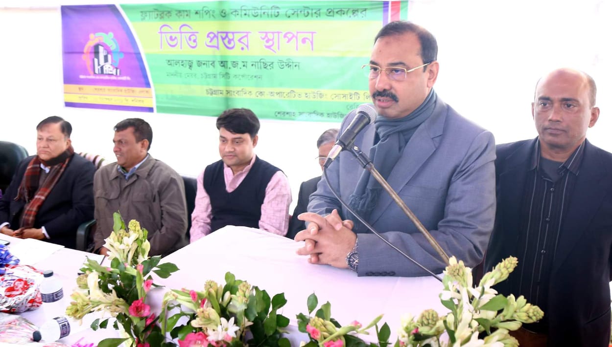 চট্টগ্রাম : নগরের শেরশাহ সাংবাদিক হাউজিং সোসাইটি চত্বরে ফ্ল্যাট ব্লক কাম শপিং ও কমিউনিটি সেন্টার নির্মাণ প্রকল্পের উদ্বোধন ও ভিত্তিপ্রস্তর স্থাপন উপলক্ষে আজ শনিবার (২৮ ডিসেম্বর) চট্টগ্রাম সাংবাদিক হাউজিং কোপারেটিভ সোসাইটি আয়োজিত অনুষ্ঠানে প্রধান অতিথি ছিলেন সিটি মেয়র আ জ ম নাছির উদ্দীন।