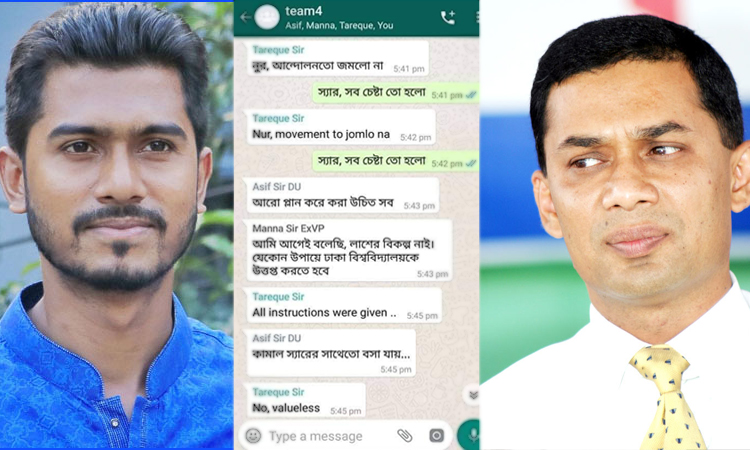 এরপর তারেক নামের আইডি থেকে লেখা হয়, ‘আরও প্ল্যান করে করা উচিত সব। আমি আগেও বলেছি, লাশের বিকল্প নাই। যেকোনো উপায়ে ঢাকা বিশ্ববিদ্যালয়কে উত্তপ্ত করতে হবে। সকল নির্দেশনাই দেয়া হয়েছিল।’