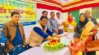 এভারগ্রীণ ইন্টারন্যাশনাল স্কুলের ক্ষুদে শিক্ষার্থীদের হাতে বার্ষিক ফলাফল ও সনদ তুলে দিচ্ছেন প্রধান অতিথি।[/caption]