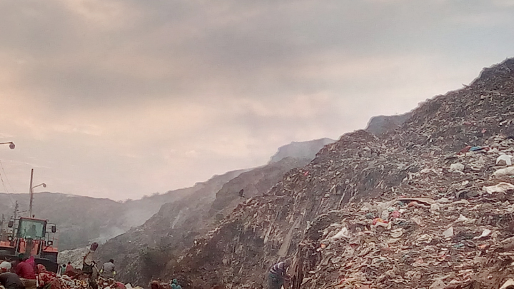 বুধবার (২৫ ডিসেম্বর) সকালের দিকে নগরীর হালিশহরের আনন্দবাজার এলাকার চসিকের টেনজিং গ্রাউন্ডতে (টিজি) গিয়ে দেখা যায়, প্রায় এক কিলোমিটার জুড়ে চট্টগ্রাম সিটি কর্পোরেশনের আবর্জনার ভাগাড়। প্রায় ৩০০-৩৫০ মিটারের উচ্চতার ওই আবর্জনার ভাগাড়ে আগুন জ্বলছে। সেখান থেকে বের হচ্ছে কালো ধোঁয়া। আবর্জনার স্তূপ থেকে প্লাস্টিক ও অন্যান্য ধাতু খুঁজছে কিছু টোকাই।