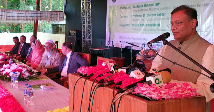 চট্টগ্রাম বিশ্ববিদ্যালয়ে ইনস্টিটিউট অব ফরেস্ট্রি এন্ড এনভায়রনমেন্টাল সায়েন্স এর পুণর্মিলনী অনুষ্ঠানে প্রধান অতিথির বক্তব্য দেন তথ্যমন্ত্রী ড. হাছান মাহমুদ।[/caption]