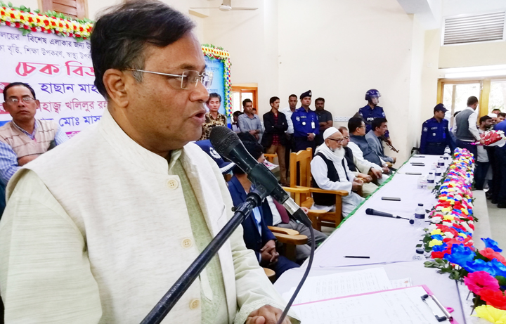 রাঙ্গুনিয়ায় প্রধানমন্ত্রীর কার্যালয়ের উপকরণ বিতরণ ও ক্যান্সার রোগীদের চেক হস্তান্তর অনুষ্ঠানে প্রধান অতিথির বক্তব্য দেন তথ্যমন্ত্রী ড. হাছান মাহমুদ এমপি।[/caption]