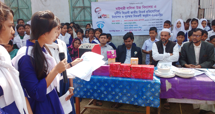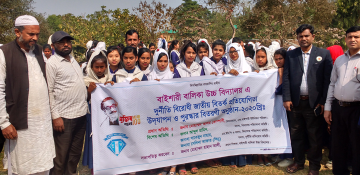 নাইক্ষ্যংছড়ি (বান্দরবান) : নাইক্ষ্যংছড়ি উপজেলার বাইশারী বালিকা উচ্চবিদ্যালয়ে দুর্নীতি বিরোধী জাতীয় বিতর্ক প্রতিযোগিতা উদযাপন ও পুরষ্কার বিতরণ অনুষ্ঠান বর্নাঢ্য আয়োজনের মধ্যদিয়ে সম্পন্ন হয়েছে।