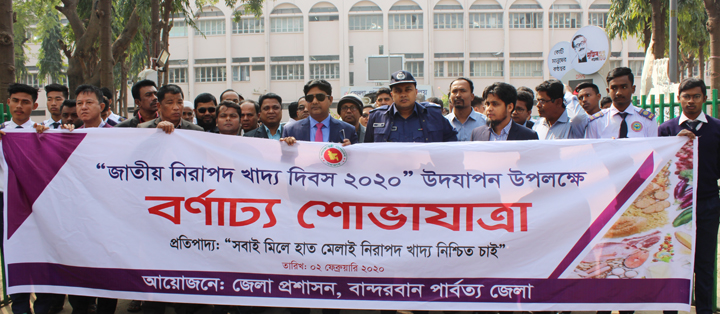 বান্দরবান : “সবাই মিলে হাত মেলাই, নিরাপদ খাদ্য নিশ্চিত চাই ” এই প্রতিপাদ্যকে সামনে রেখে বান্দরবানে বর্ণাঢ্য আয়োজনে জাতীয় নিরাপদ খাদ্য দিবস উদযাপন করা হয়েছে।