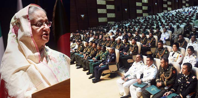 জাতিসংঘ শান্তিরক্ষী মিশনে বাংলাদেশের সশস্ত্র বাহিনীর অবদানের কথা উল্লেখ করে প্রধানমন্ত্রী বলেন, আমি সশস্ত্রবাহিনীকে এমনভাবে উন্নত করতে চাই যাতে তারা যেকোনো দেশে যেকোনো পরিস্থিতিতে শান্তি রক্ষায় কাজ করে যেতে পারে।