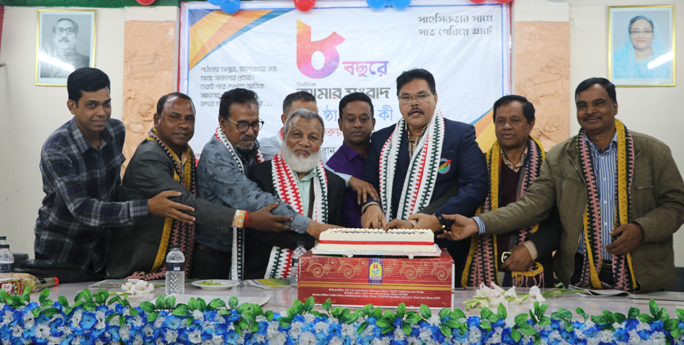 আলোচনা সভা শেষে অতিথিরা মিলে দৈনিক আমার সংবাদের ৮ বছরে পর্দাপন উপলক্ষে কেক কাটায় অংশ নেয়।