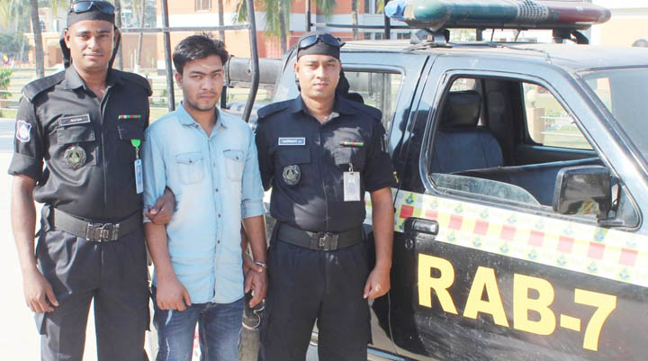 গোপন তথ্যের ভিত্তিতে গত ১৩ মার্চ র্যাব-৭ এর একটি চৌকশ অভিযানিক দল ঢাকা মহানগরীর মিরপুর থানাধীন মেরুন রোডস্থ হোটেল লন্ডন প্লেসে অভিযান পরিচালনা করে তাকে আটক করা হয়।