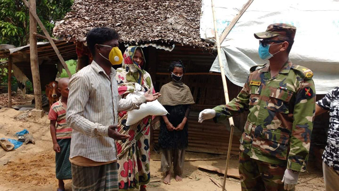 পাশাপাশি সেনাবাহিনী কর্মহীন খেটে খাওয়া মানুষের মাঝে ত্রান সামগ্রী ও বিতরণ করে দৃষ্টান্ত স্থাপন করেন।