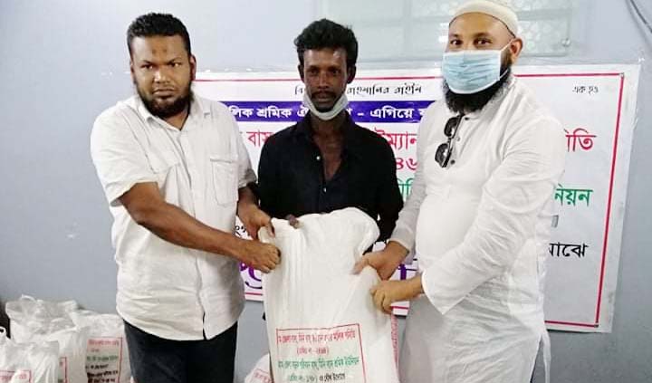 পরিবহণ শ্রমিকদের মাঝে খাদ্য সহায়তা বিতরণ সংগঠন নেতৃবৃন্দের[/caption]